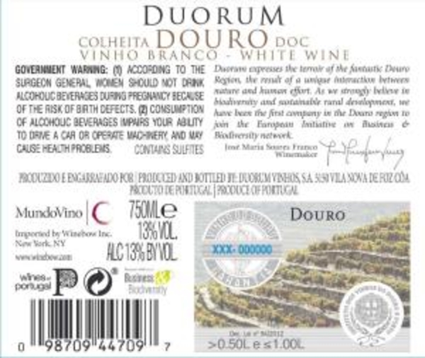 Duorum Colheita White 2015 Back Label