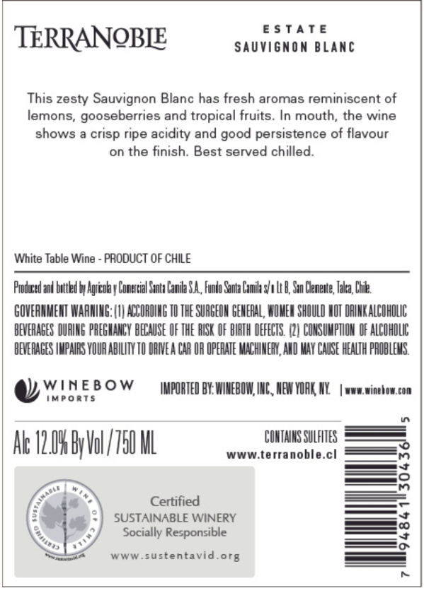 TerraNoble Classic Cabernet Sauvignon Back Label