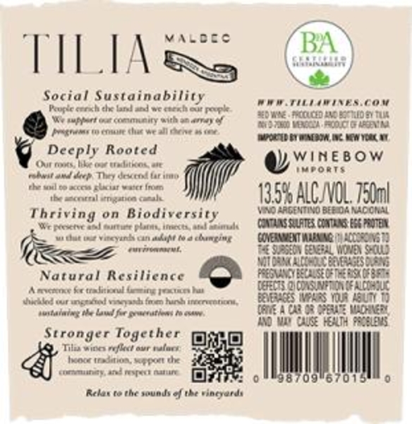 Tilia Malbec Back Label (NV)